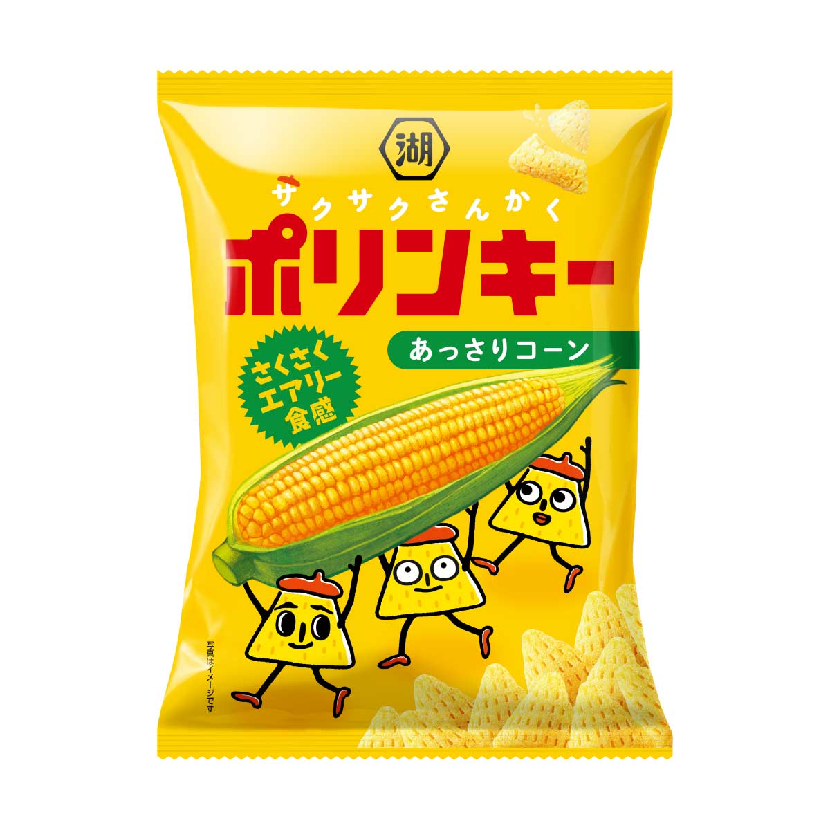 「ポリンキー♪ポリンキー♪三角形のヒミツはね♪」でお馴染み、さくさくかる~いさんかく!ポリンキー。ポリンキーならではの、とうもろこしの甘みと軽い食感で笑顔あふれます!