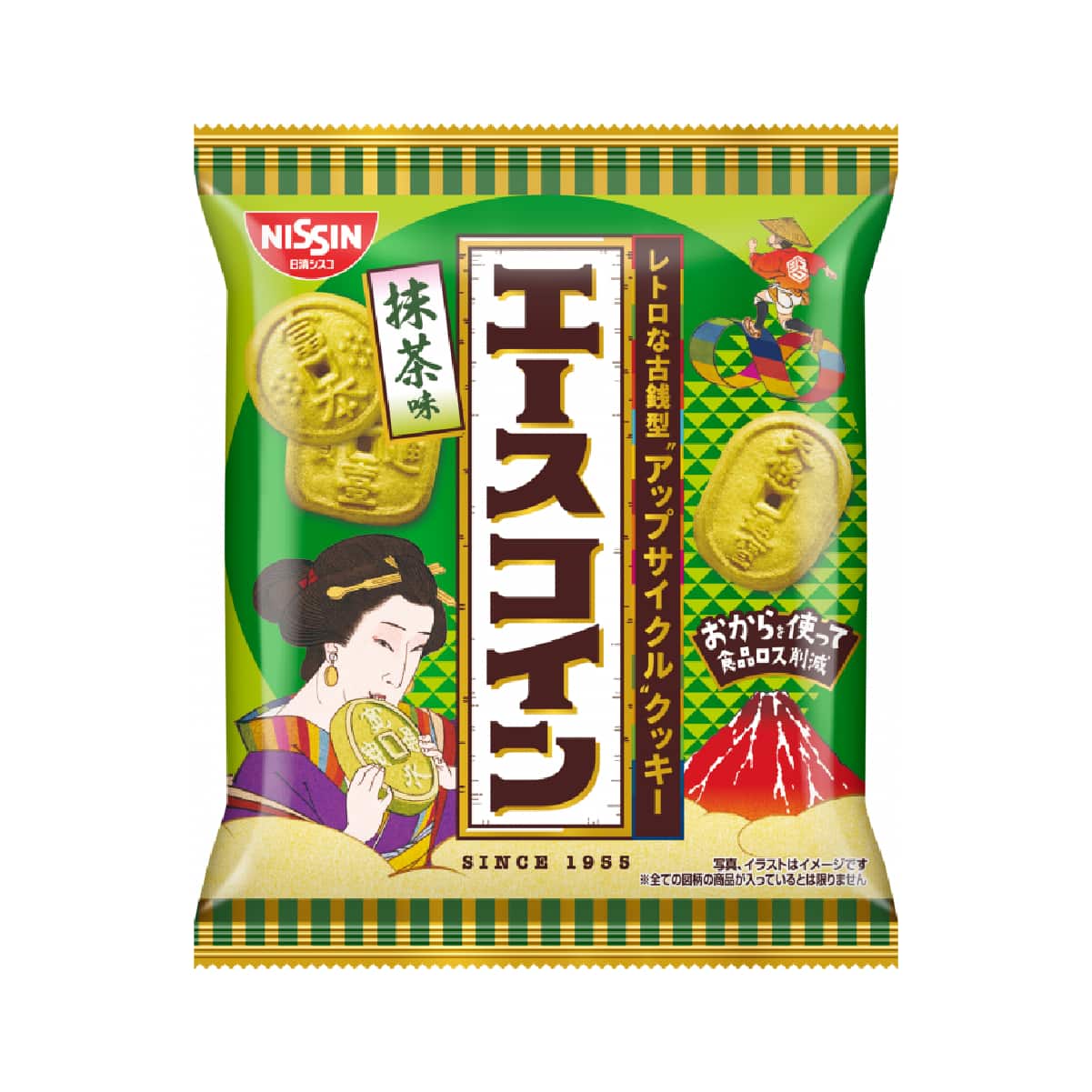 20種類の古銭の形がユニークなビスケットで、香り豊かな京都産の宇治抹茶を使用した、抹茶のうまみが後引くおいしさが特長◎