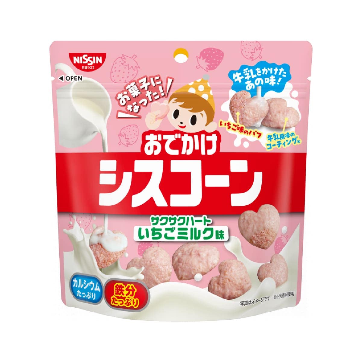 サクサクした食感で甘酸っぱいいちご味のパフを牛乳風味のチョコレートコーチングで包み込みました。不足しがちなカルシウムと鉄分をたっぷり配合!