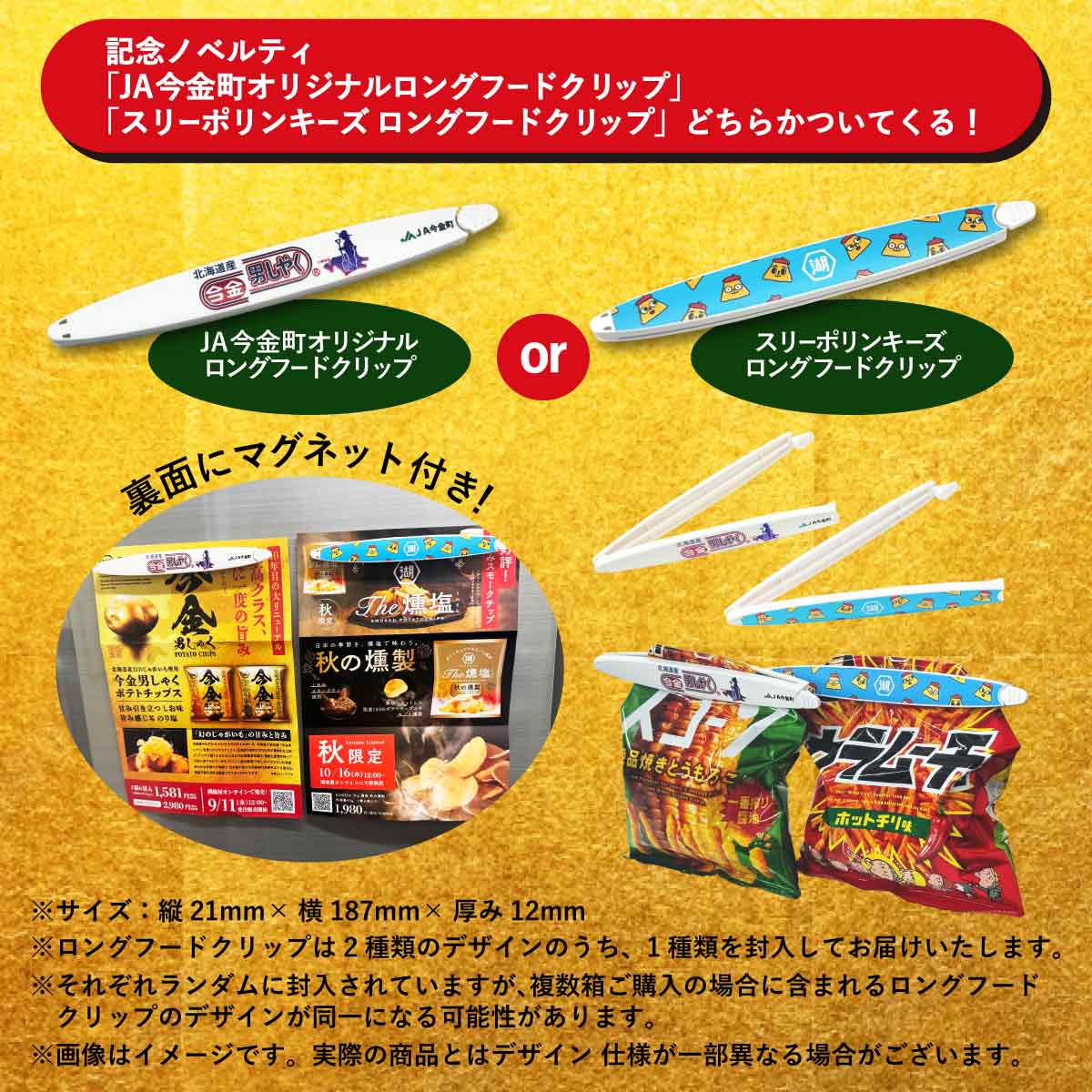 祝★今金男しゃくポテトチップス10周年記念!「湖池屋オリジナルポリンキーフードクリップ」 or 「JA今金町フードクリップ」のどちらか1種が当たる、スペシャルアソートです!