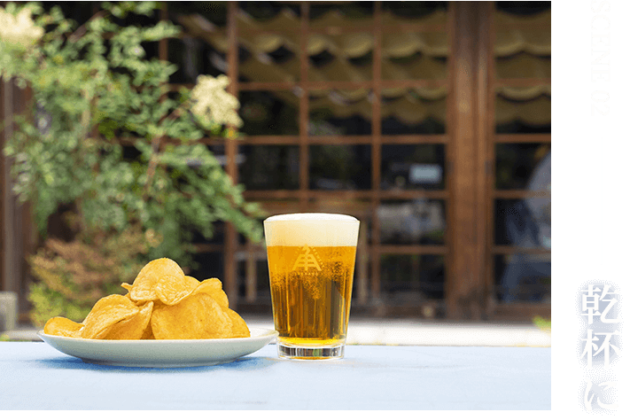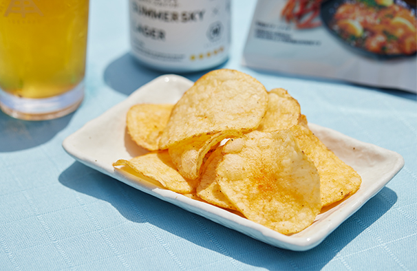 4種のホップを使い絶妙なバランスで味わいを構成しています。飲みやすさとポテトチップスと併せて飲んでも負けないくらい飲みごたえのある、ほどよいホッピーラガーになっています。製造工程では普段と違う糖化のプロセスを取り入れることで、よりすっきりとしたキレの良い後味を目指しました。